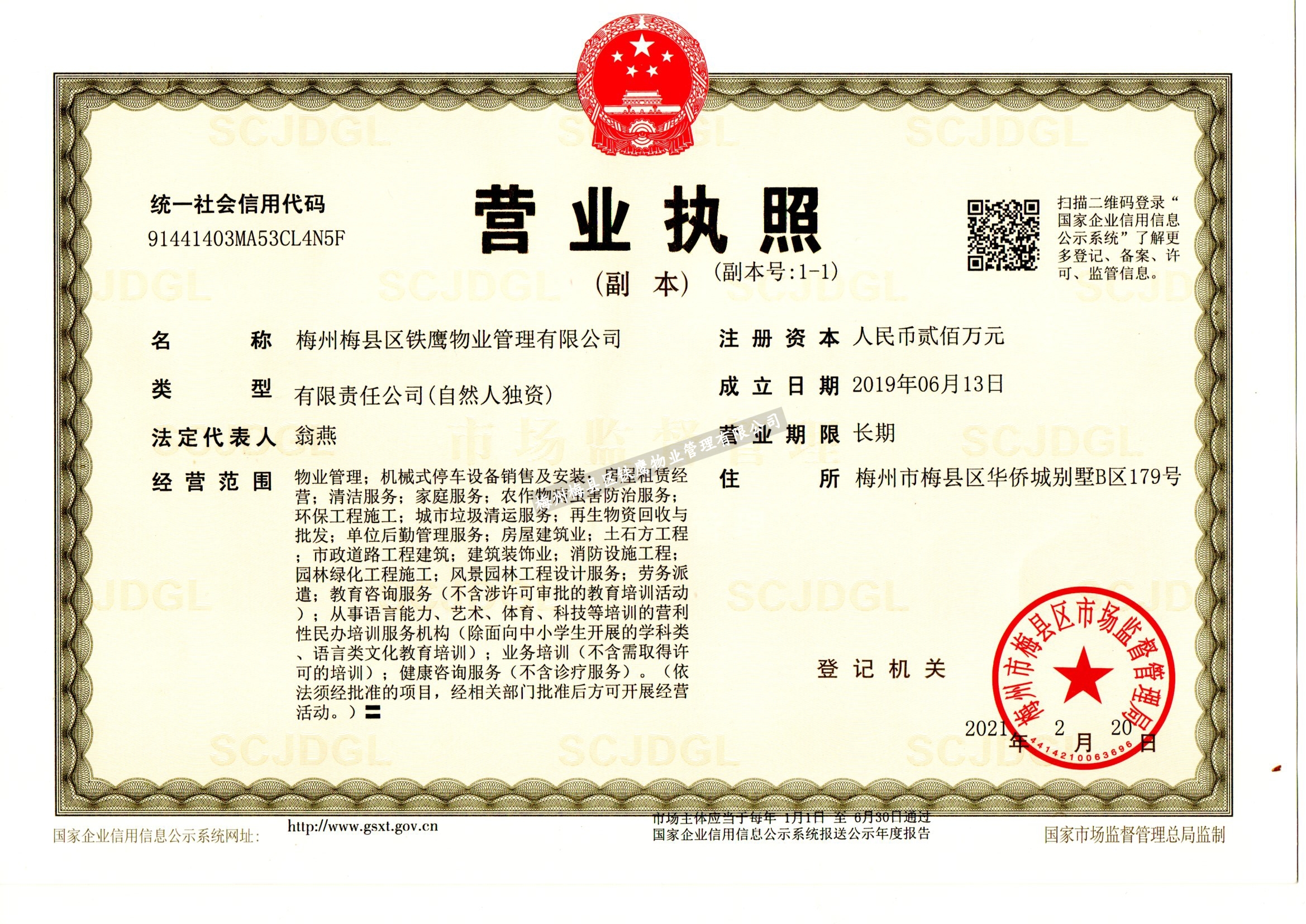 梅州梅縣區(qū)鐵鷹物業(yè)管理有限公司